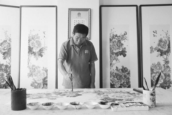 刘灿喜现在在全身心做一件事:那就是要为在八路军总部原左权县莲花岩牺牲的八路军战士们,创作83幅牡丹图并配写83幅书法,希望他们的美名永世流传。