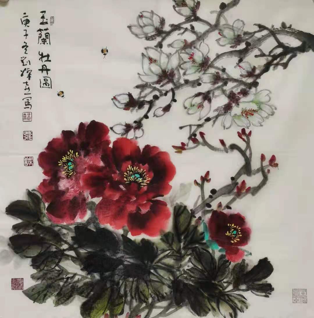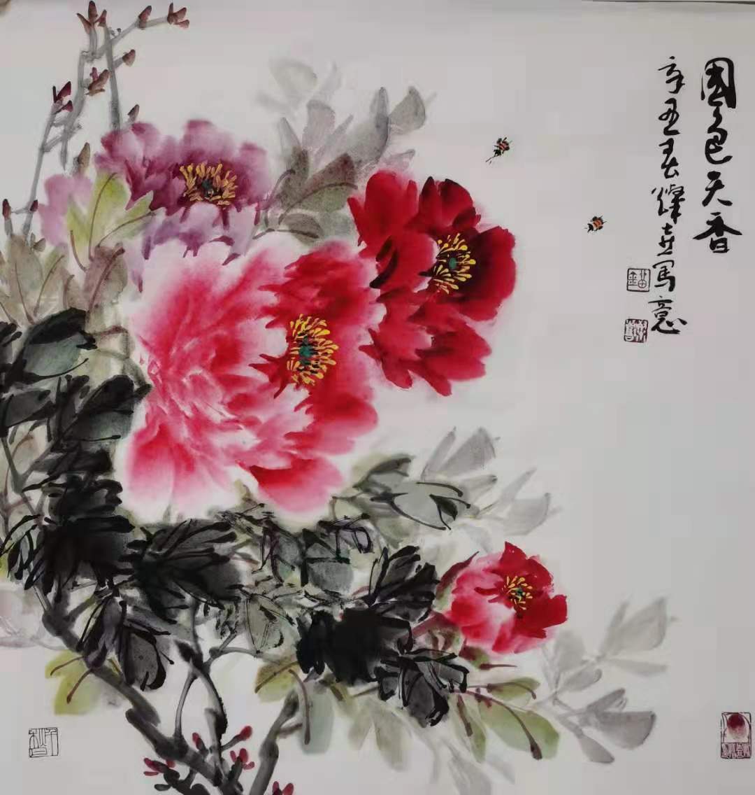 2017年,作品水墨丹青牡丹挂在了人民大会堂。